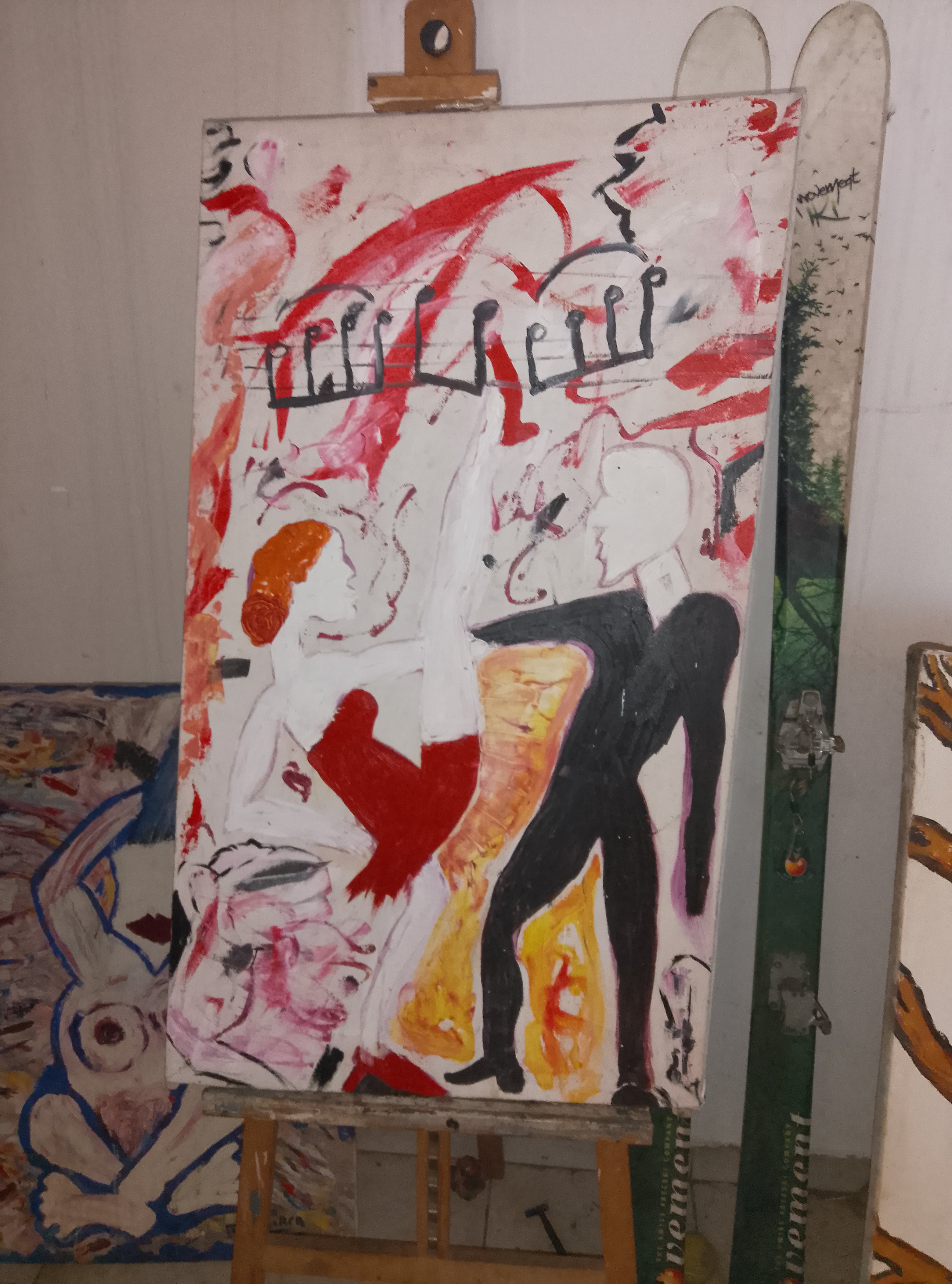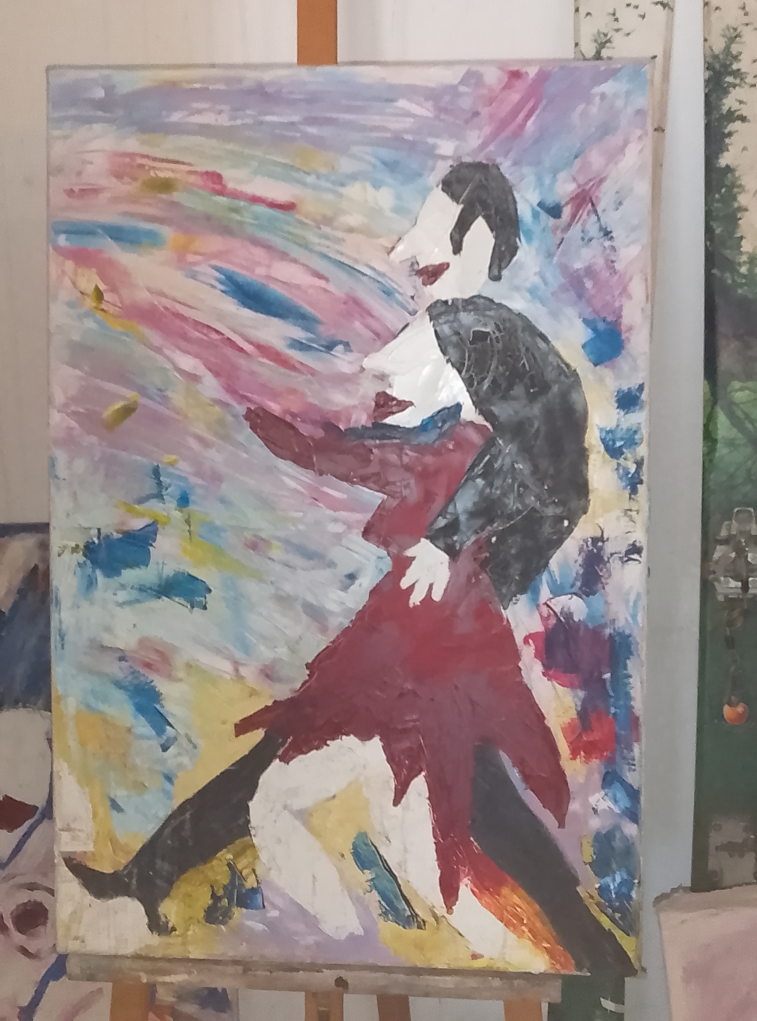 ![Oil painting titled 'View 'salve de tango par une femme en rouge red female salute kick of tango 106x60' by Ronald Ray Mangiaracina - [Brief description e.g., A still life composition with fruit and flowers]](images/Alors-on-danse-TANGO-Alors-on-danse-TANGO-60x90.jpg)